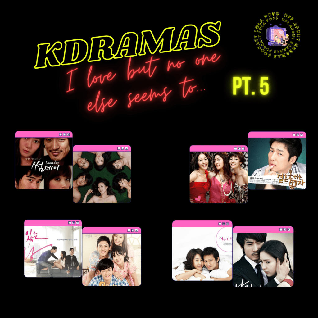 It’s back! The fifth and final installment of my first round of “Kdramas I Love But No One Else Seems to…” I plan to keep this up as I continue looking back over the dramas I’ve watched over the years and finding ones I feel like I still don’t hear enough about . It’s been so much fun revisiting each of these dramas and I hope that I’ve inspired at least one person to check out one of these dramas I really do love! Until the next round, enjoy! Let me know if you pick up any of these!